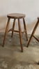 A set of four antique English stools from a pottery studio in the Cotswolds. A lovely set, in the same style, but each with its own individual character and grain. Nice and sturdy, with elm seats and beech legs.